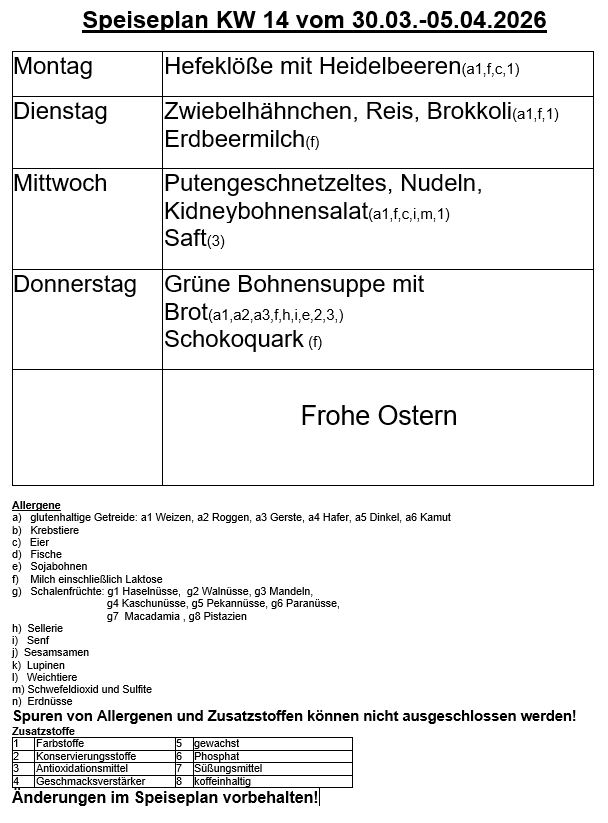 Die Termine für das ganze Schuljahr entnehmen Sie bitte dem Kalender.